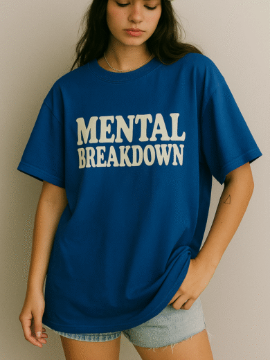 Art Illusion | Oversized Blue “Mental Breakdown” T-Shirt for Women