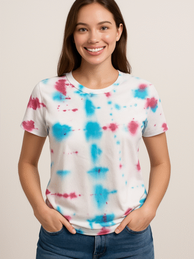 Art Illusion | Pink & Blue Tie-Dye Oversized T-Shirt for Women (Pastel Aesthetic)