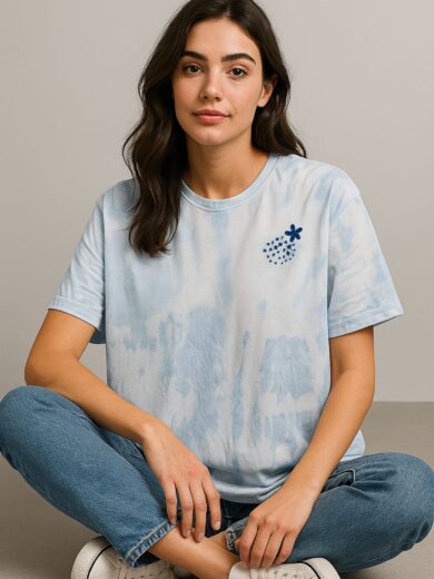 Art Illusion | Handpainted Blue Tie-Dye Oversized Cotton T-Shirt