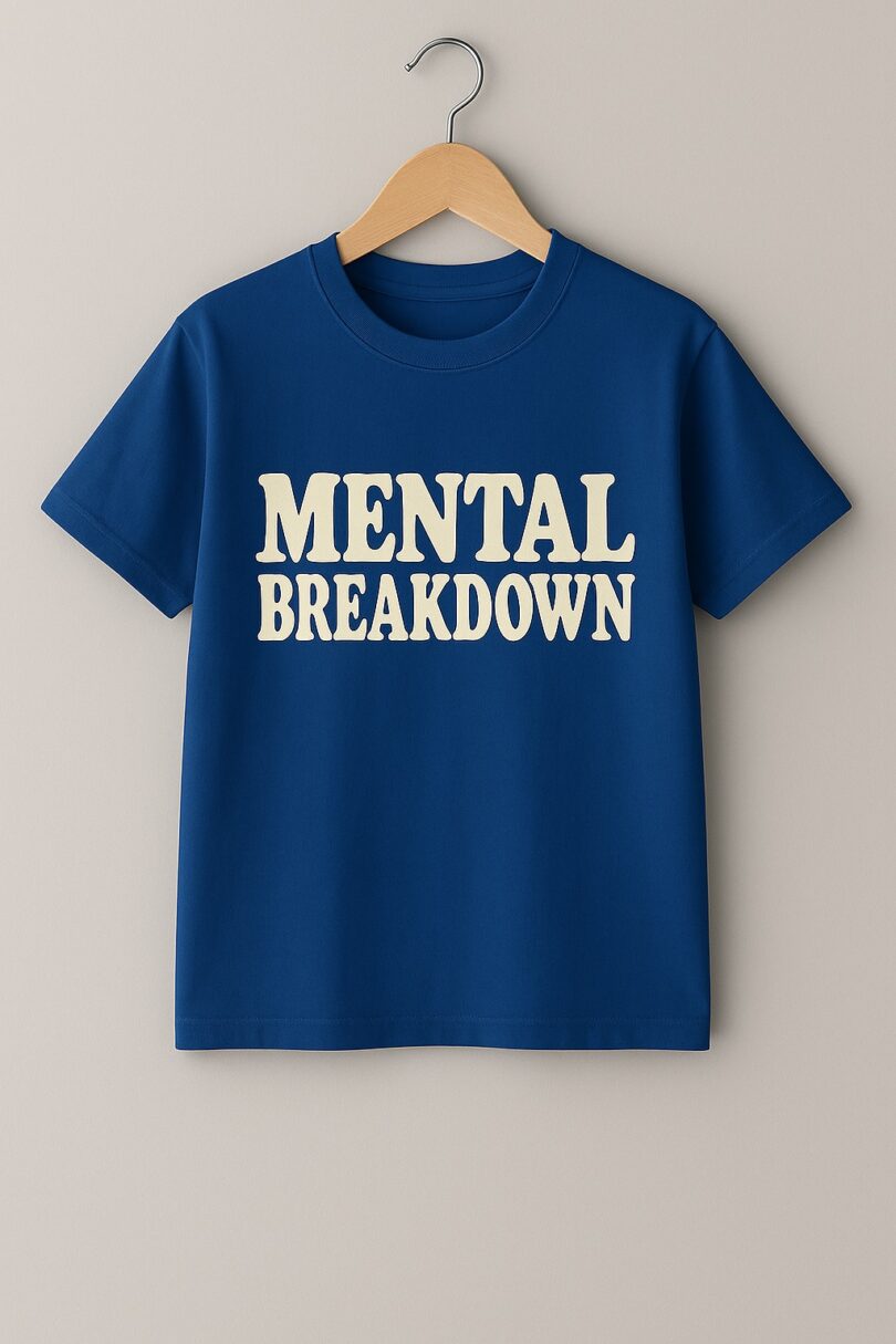 This Oversized Blue Mental Breakdown Tee from Art Illusion is made for the girls who feel everything — and still show up looking iconic. The rich blue color hits deep, and the DTF graphic brings the chaos to life with clean, bold detail.