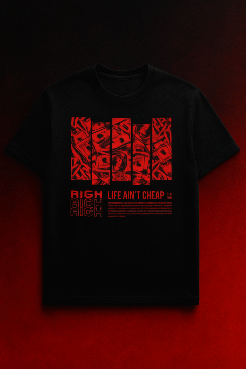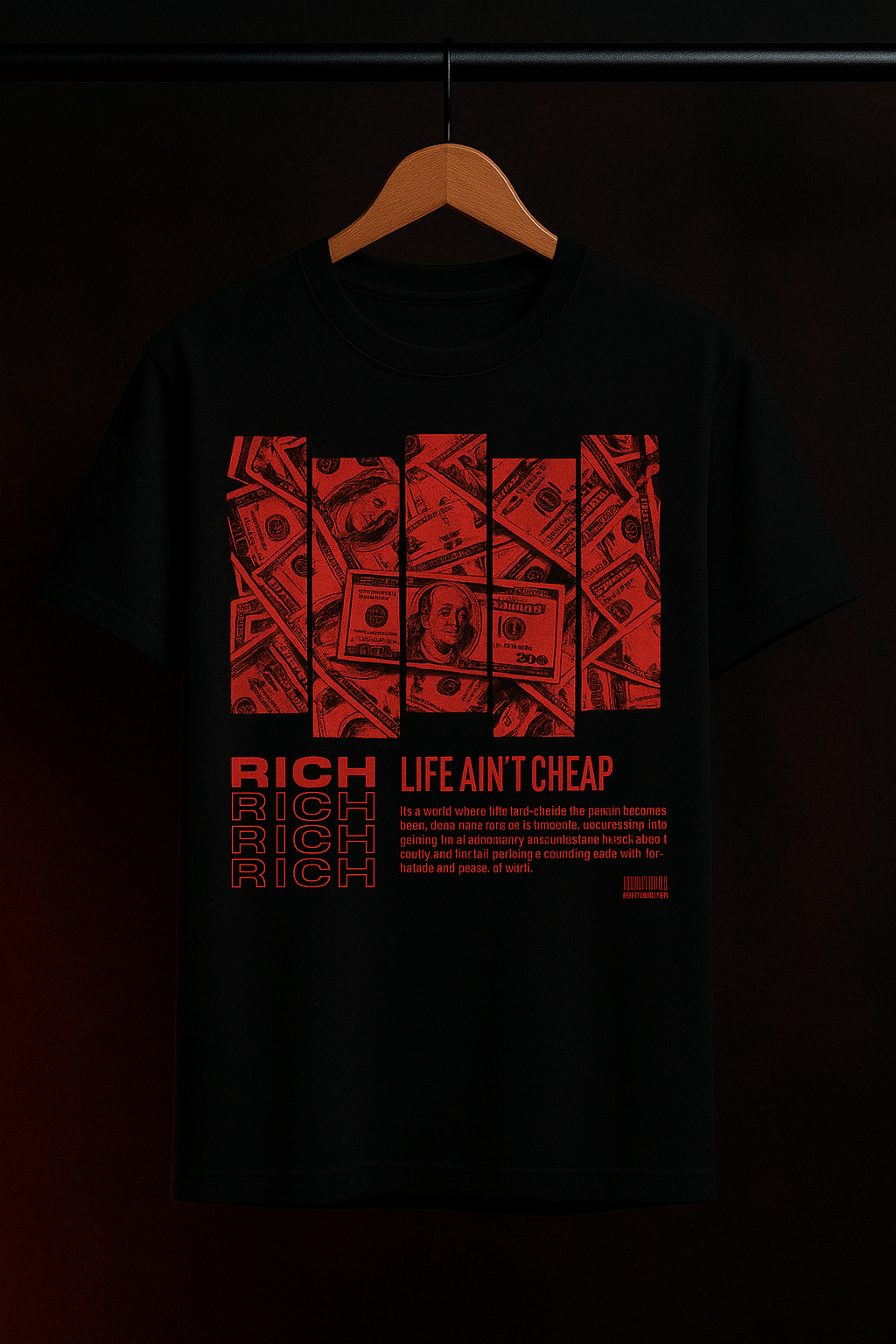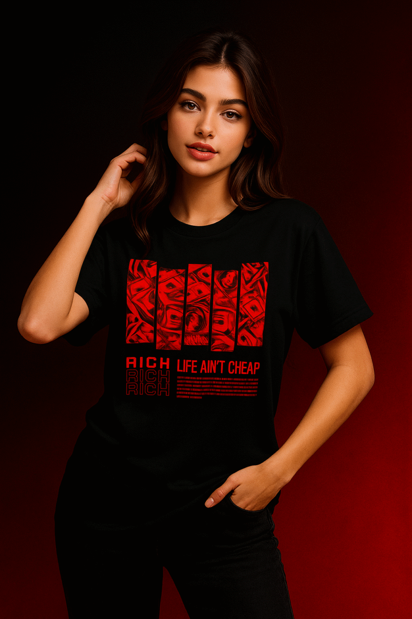 Step into your soft girl era with the all-black RICH Tee made for women who don’t chase, they attract 💅