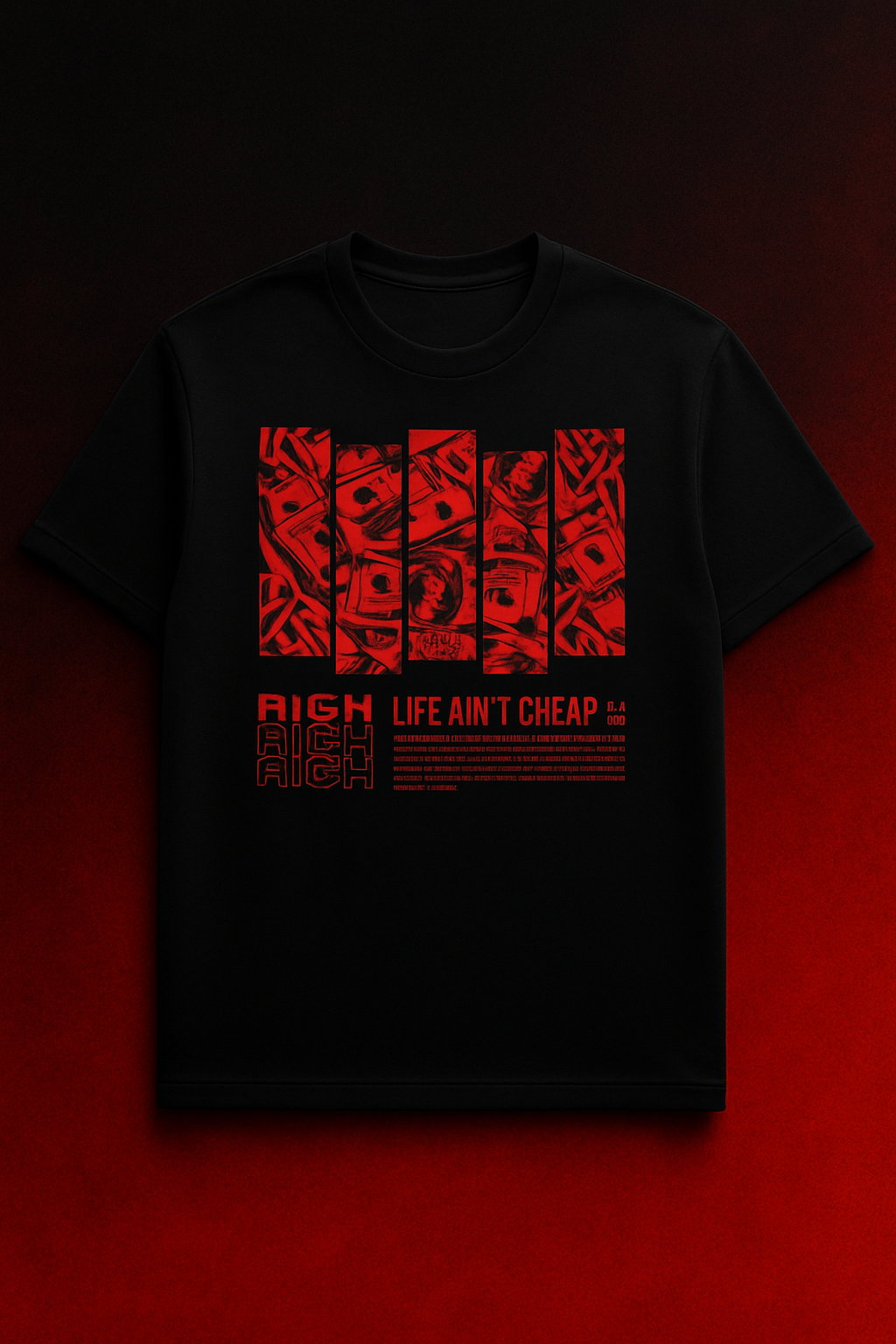 Step into your soft girl era with the all-black RICH Tee made for women who don’t chase, they attract 💅