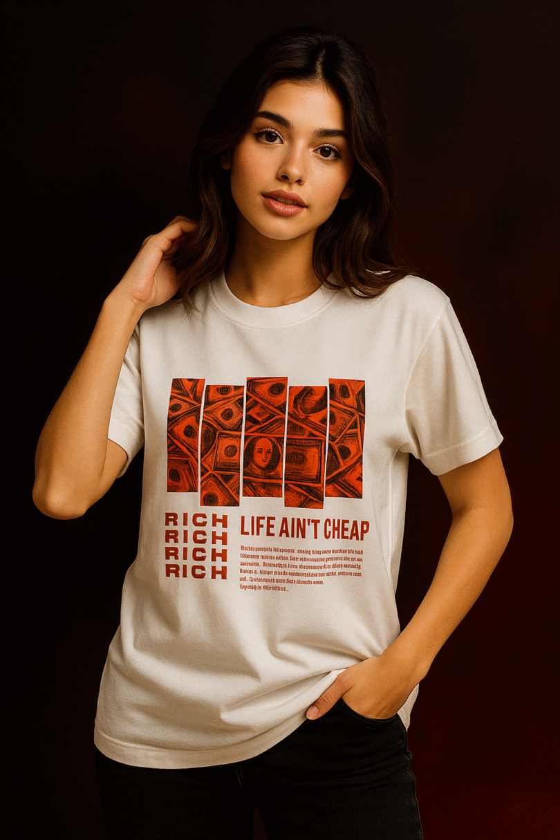 Step into your soft girl era with the all-black RICH Tee made for women who don’t chase, they attract 💅