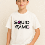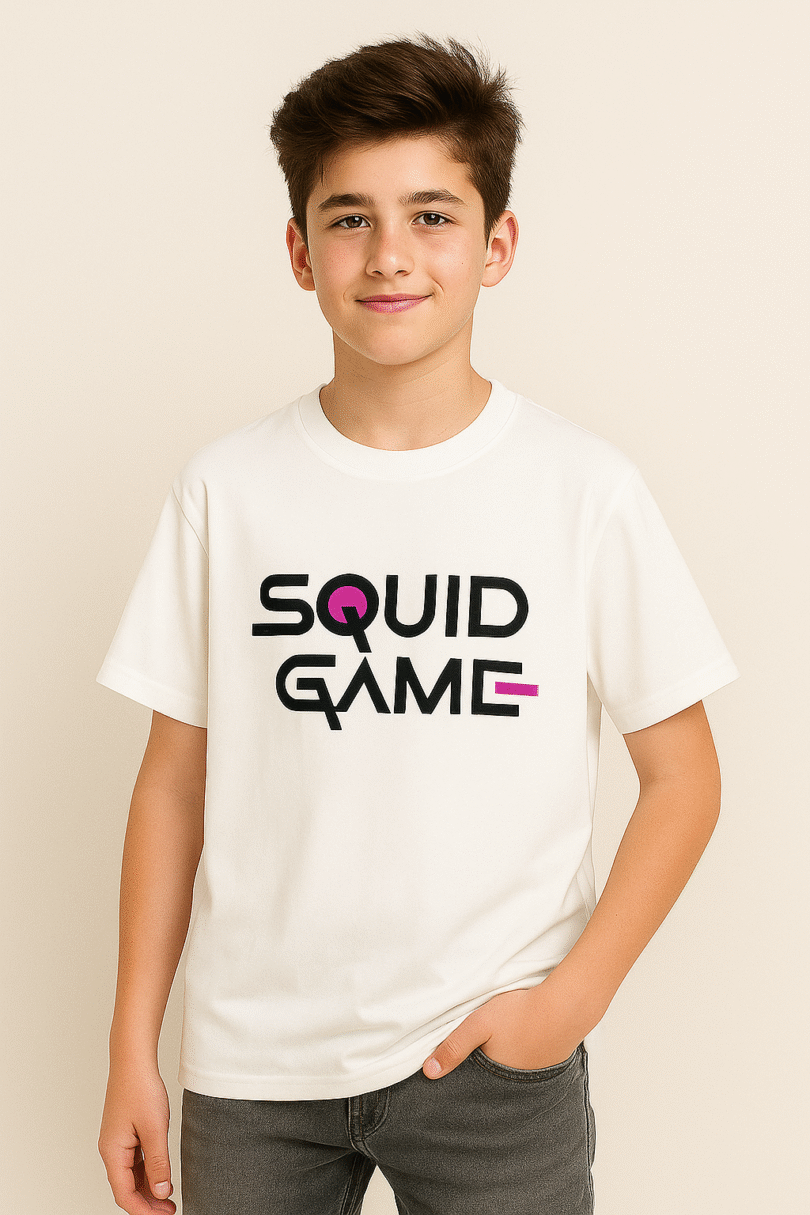 Step into the game with this premium White Squid Game Graphic Tee, crafted from high-quality sublimation cotton for that buttery-soft comfort and long-lasting print vibrancy. The sleek black-and-pink Squid Game logo pops perfectly against the crisp white base, making it a must-have for every K-drama and pop culture fan.